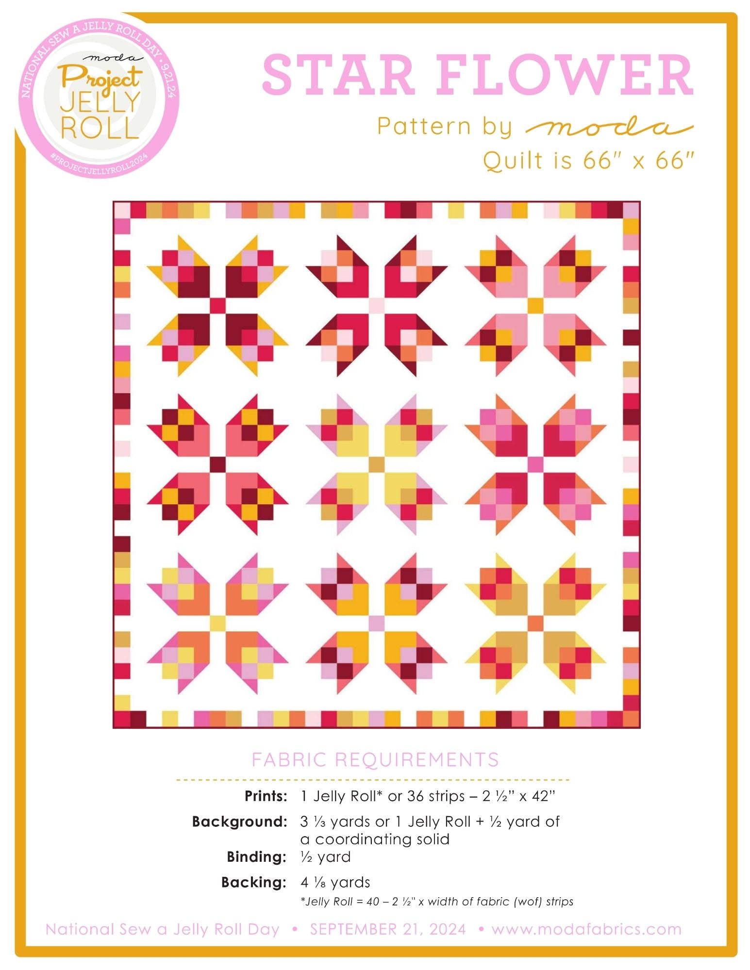 Free Quilt Pattern - Star Flower - Jellyroll Project by Moda