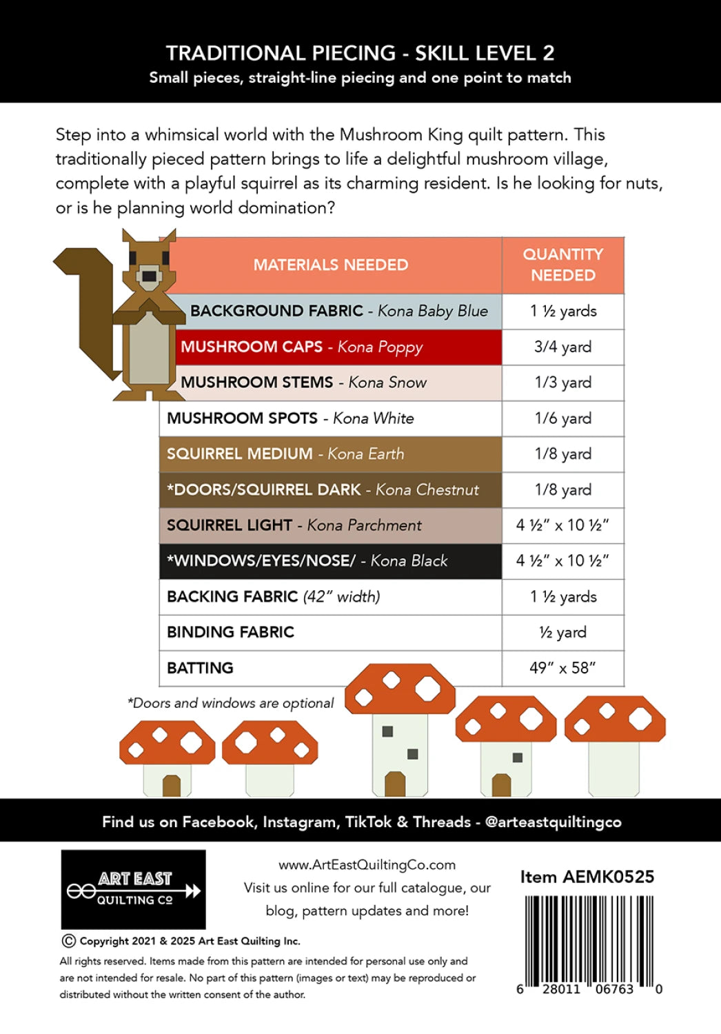 Mushroom King Quilt Pattern by Art East Quilting Co.